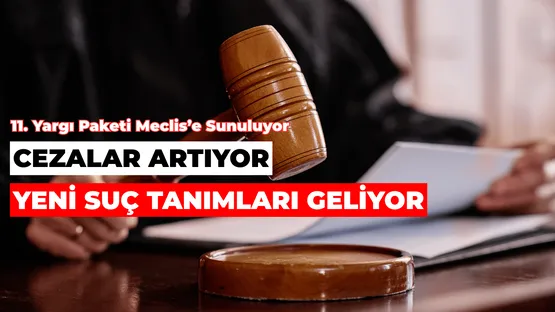 11. Yargı Paketi bugün Meclis’e sunulacak. Düzenleme, kamu güvenliğini tehdit eden eylemlere yönelik cezaların artırılmasını ve bazı fiillerin bağımsız suç kategorisine alınmasını içeriyor.