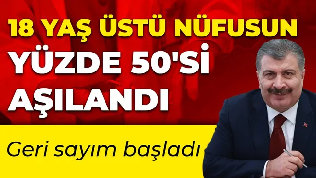 Sağlık Bakanı Fahrettin Koca,'' Aşı programında yer alan 18 yaş üstü nüfusun yüzde 50'sinin tam doz veya ilk doz aşısı tamamlanmış durumda. Program, kısa sürede, beklediğiniz başarıya ulaşacak. Aşısı henüz yapılmayanların sayısında geri sayım başladı. ''dedi