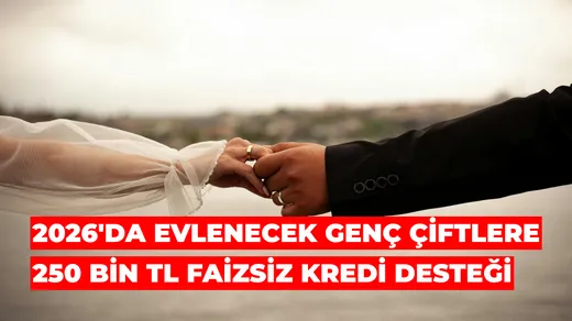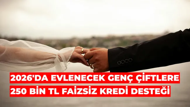 Cumhurbaşkanı Yardımcısı Cevdet Yılmaz, Ocak 2026’dan itibaren evlenecek genç çiftlere faizsiz kredi desteği verileceğini açıkladı. Eşlerden her ikisi 18-25 yaş aralığında ise kredi 250 bin TL, en az birinin 26-29 yaş aralığında olması durumunda ise 200 bin TL olacak.