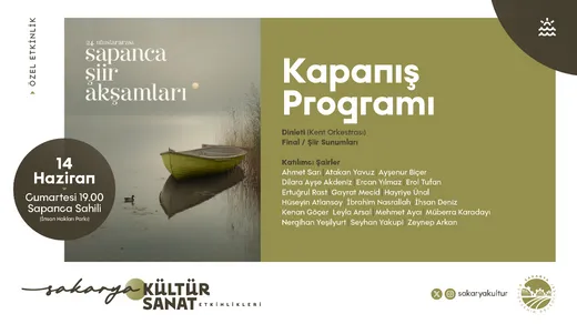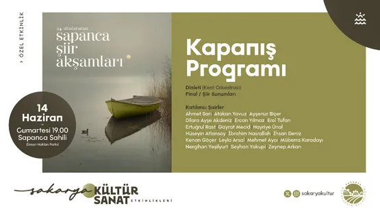 Büyükşehir Belediyesi tarafından bu yıl 24.’sü gerçekleştirilen Uluslararası Sapanca Şiir Akşamları muhteşem bir kapanış programıyla gönüllere dokunacak. Program, 14 Haziran Cumartesi günü Sapanca Sahili İnsan Hakları Parkı’nda gerçekleştirilecek.