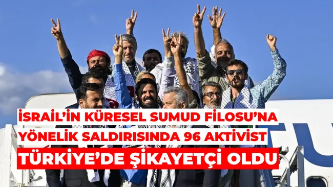 İsrail'in 1 Ekim 2025'te Gazze'ye insani yardım taşıyan Küresel Sumud Filosu'na yönelik uluslararası sularda gerçekleştirdiği saldırının ardından Türkiye'ye dönen 249 aktivistten 96'sı, İstanbul Cumhuriyet Başsavcılığı'na başvurarak şikayetçi oldu. Aktivistler, İsrail'in alıkoyma sırasında fiziksel ve psikolojik şiddet, ırkçı hakaretler ve kötü muameleye maruz kaldıklarını belirttiler. Soruşturma, Türk Ceza Kanunu ve uluslararası deniz hukuku çerçevesinde sürdürülüyor.