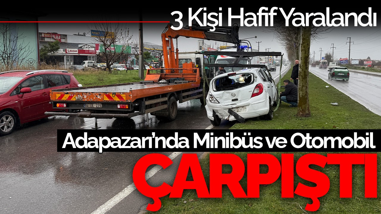 Sakarya'nın Adapazarı ilçesinde minibüs ile otomobilin çarpışması sonucu meydana gelen kazada 3 kişi hafif şekilde yaralandı. Yaralılar hastaneye sevk edilirken olayla ilgili inceleme başlatıldı.