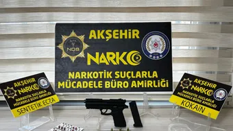 Konya'nın Akşehir ilçesinde polis ekiplerinin uygulama sırasında durdurduğu bir araçta uyuşturucu maddeler ve silah ele geçirildi. Üç şüpheli hakkında yasal işlem başlatıldı.