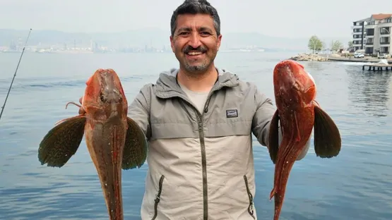 Bursa'nın İnegöl ilçesine yaşayan ve amatör balıkçılık yapan Şaban Kılıçcı, Kocaeli'nin Gölcük ilçesinde 1 saat arayla toplamda 6 buçuk kilo ağırlığında iki kırlangıç balığı yakaladı. O anları amatör kamera ile kaydeden Kılıçcı, mutlu olduğunu belirtti.