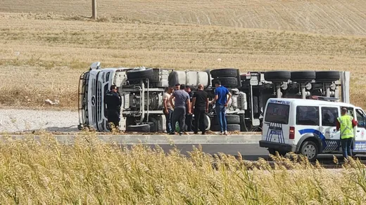 Ankara'nın Haymana ilçesinde kontrolden çıkan kuzu yüklü tırın devrilmesi sonucu çok sayıda küçükbaş hayvan telef oldu.