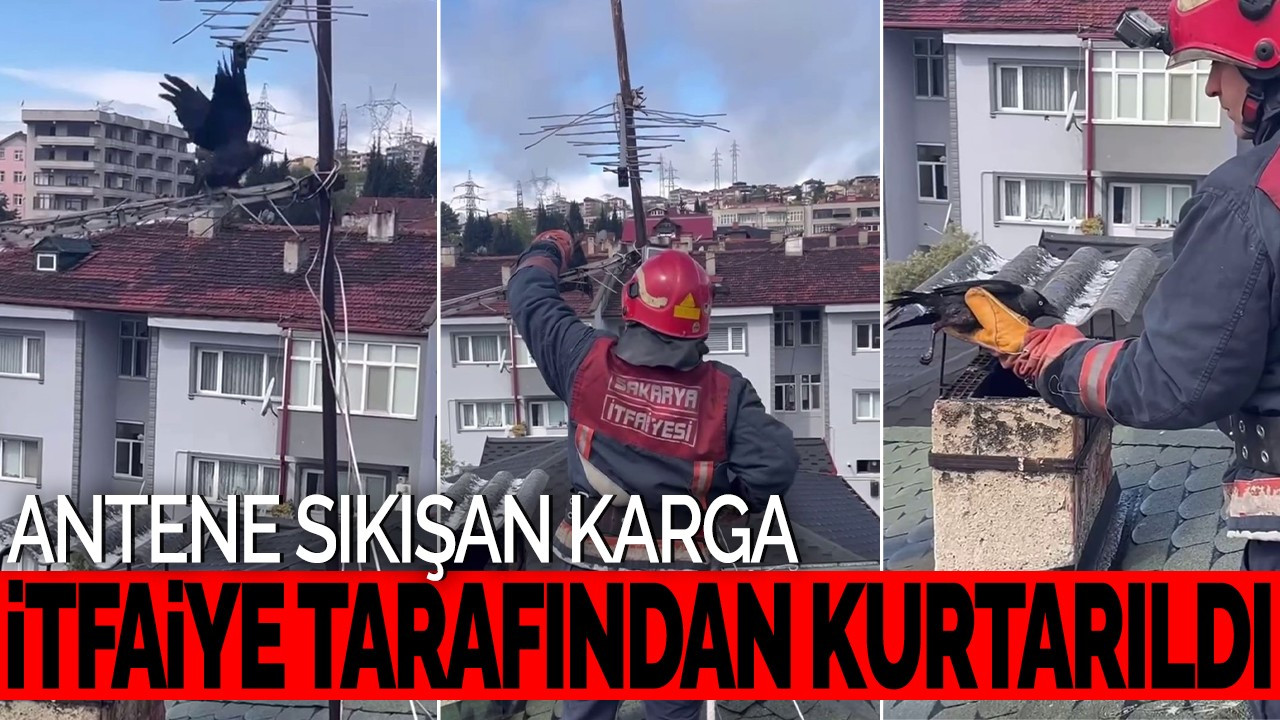 Sakarya’nın Erenler ilçesinde binanın çatısındaki antene sıkışan karga, itfaiye ekiplerinin yardımıyla özgürlüğüne kavuştu.
