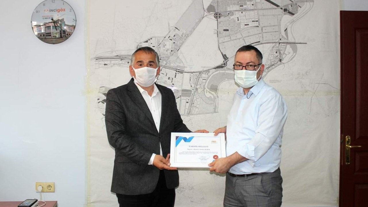 Arifiye Belediyesinde Topograf Ahmet Sedat Kara Teşekkür Belgesine layık görüldü.