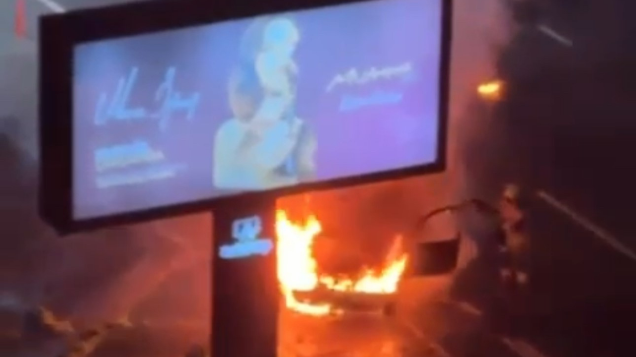Ataşehir’de Seyir Halindeki Otomobil Alev Aldı, Reklam Tabelasına Çarptı