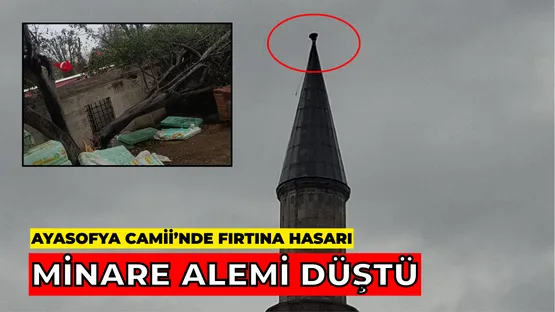 İstanbul’da etkili olan şiddetli rüzgâr nedeniyle Ayasofya-i Kebir Cami-i Şerifi’nin Mimar Sinan tarafından inşa edilen minaresine ait alem yerinden koparak bahçeye düştü. Olayda can kaybı yaşanmazken, gerekli güvenlik önlemleri alındı.
