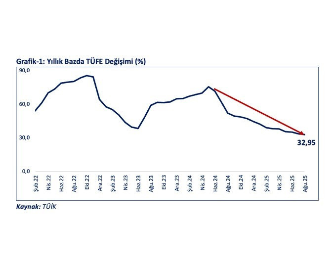 Sosyal medya hesabı üzerinden açıklama yapan Bolat, TÜFE’nin ağustos ayında %2,04 arttığını, yıllık bazda ise %32,95 seviyesine düştüğünü hatırlatarak, bu rakamın 2024 Mayıs ayında görülen tepe noktasına kıyasla 42,5 puanlık bir düşüşü temsil ettiğini ifade etti.