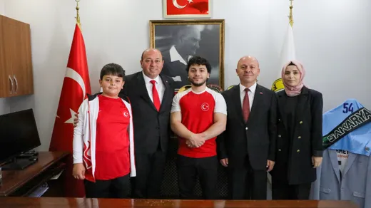 Ziyaret, hatıra fotoğrafı çekimiyle sona ererken, Başkan Ata genç şampiyonun ailesine teşekkür etti ve