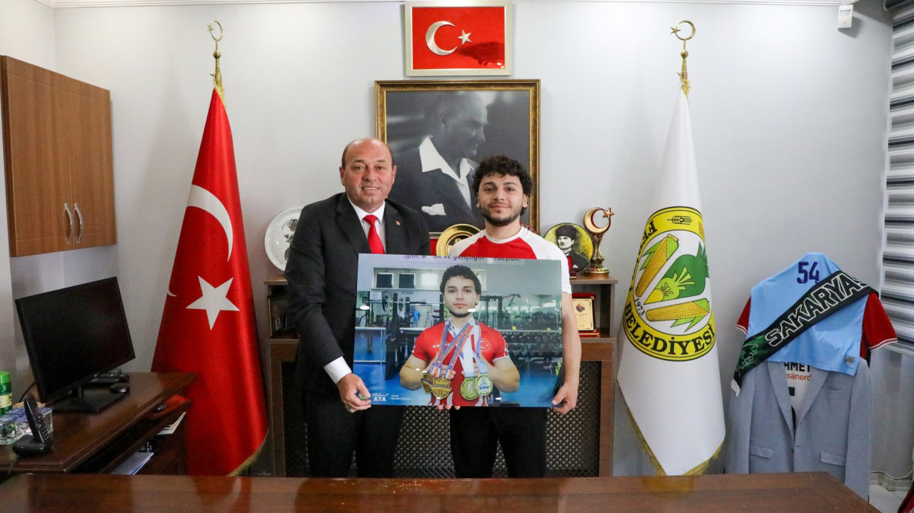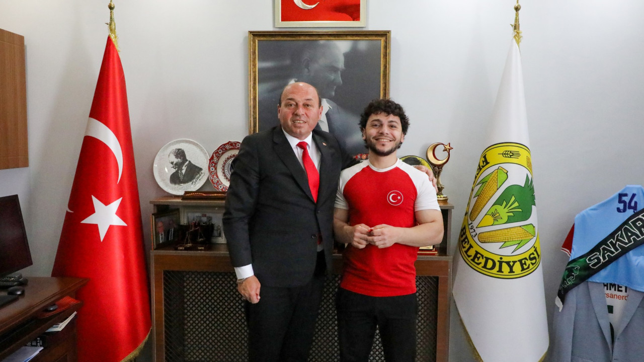 Başkan Ata, Ferizli’nin Altın Bileği Dünya Şampiyonu İsmail Hacı Bekar’ı Ağırladı