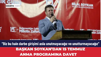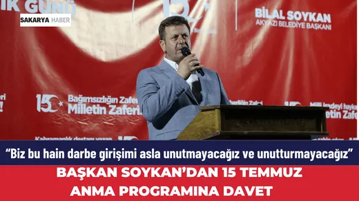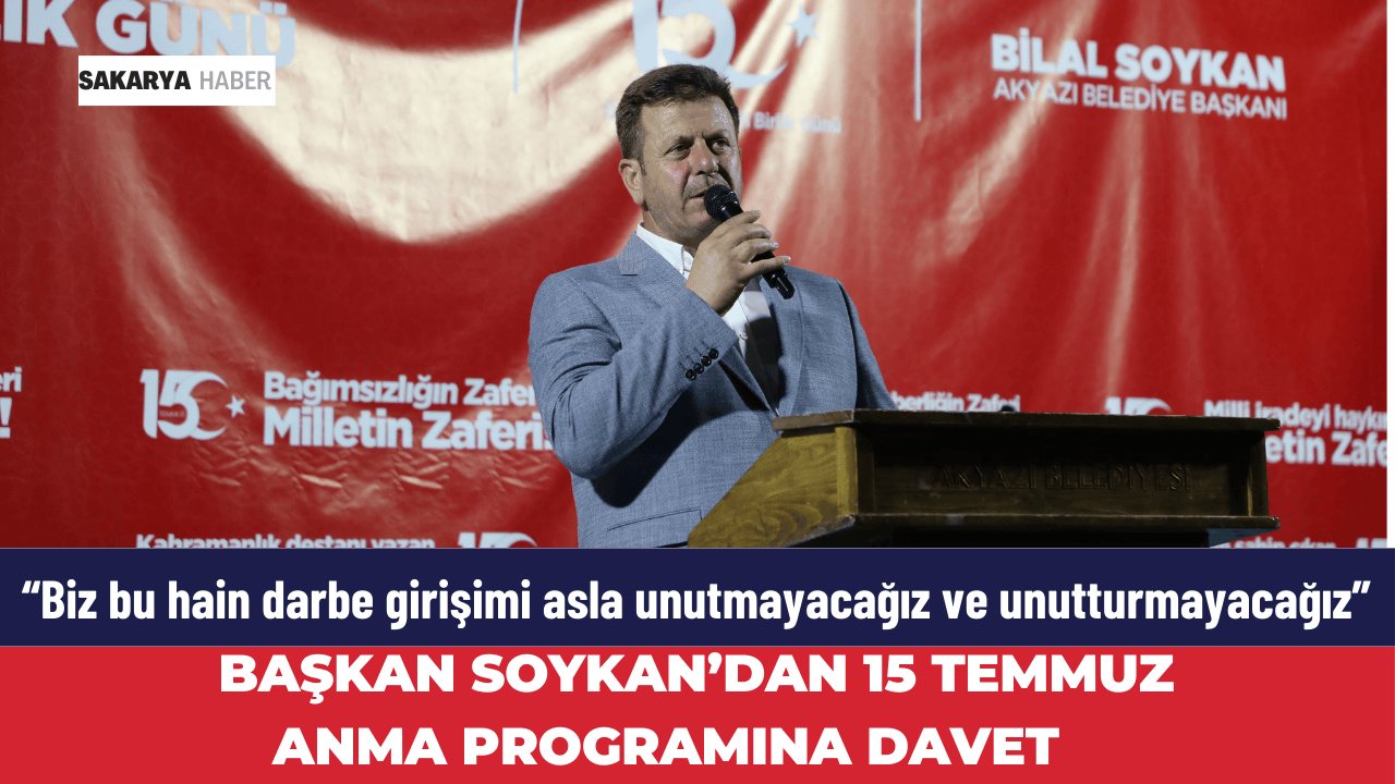 Akyazı Belediye Başkanı Bilal Soykan, 15 Temmuz Demokrasi ve Milli Birlik Günü kapsamında ilçe merkezinde düzenlenecek anma programına tüm vatandaşları davet etti.