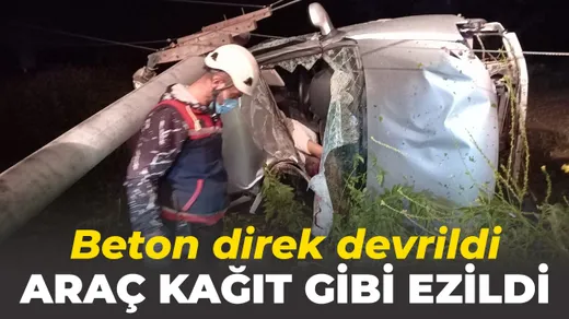 Akyazı'da çarparak devirdiği beton elektrik direğinin altında kalan otomobilin sürücüsü yaşamını yitirdi.
