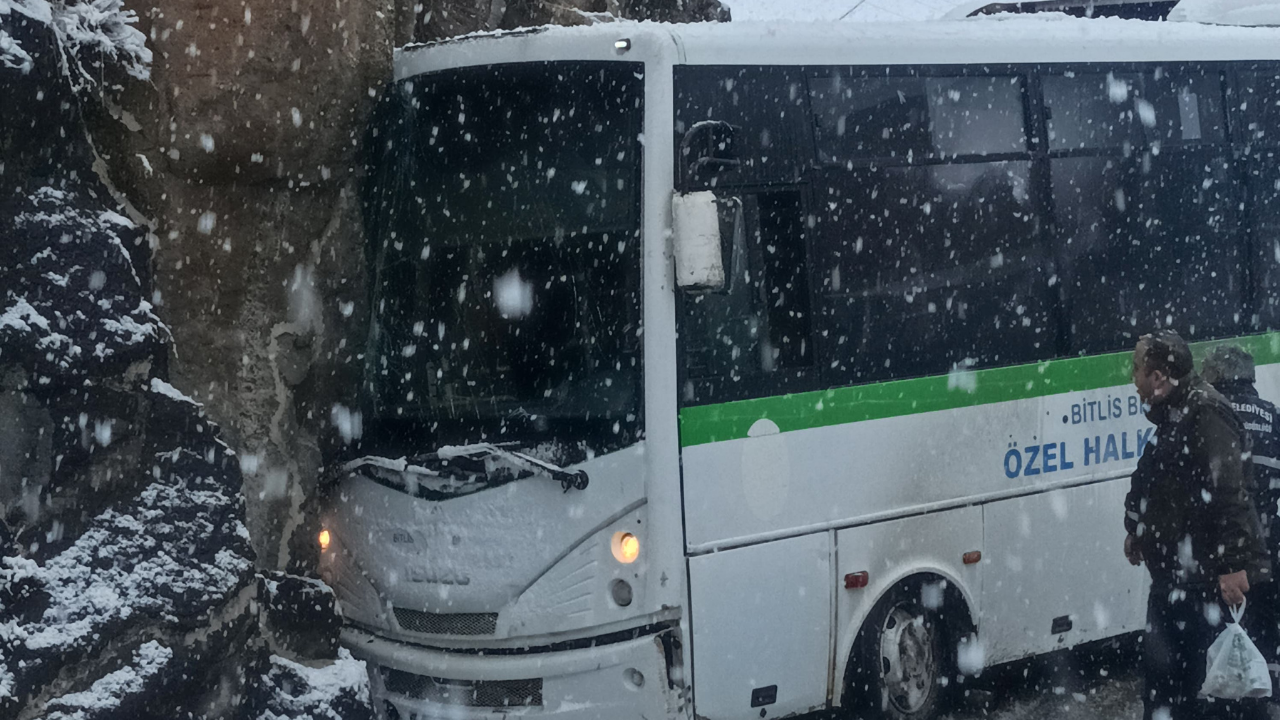 Edinilen bilgilere göre özel halk otobüsü, yokuş aşağı inerken kar yağışı nedeniyle kayganlaşan yolda sürücüsünün kontrolünden çıktı. Direksiyon hakimiyetini kaybeden sürücü, aracı durduramayarak Bitlis Kalesi’nin taş duvarına çarptı.