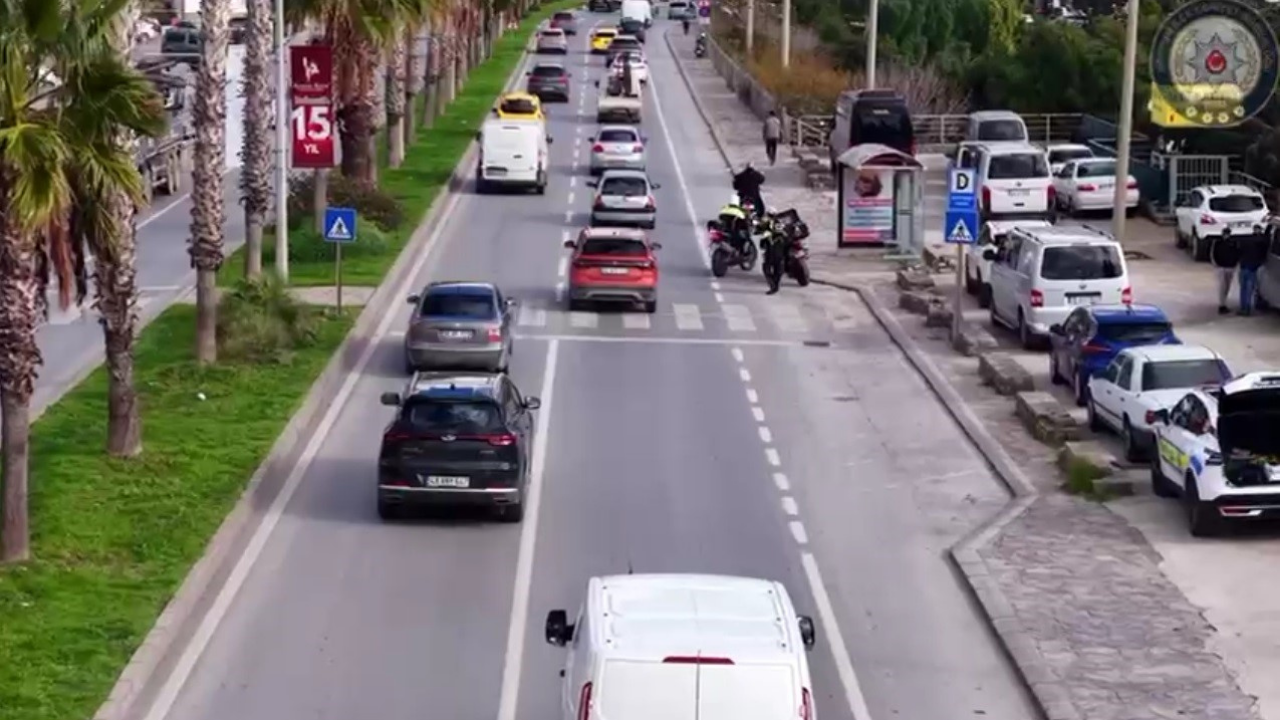 Bodrum İlçe Emniyet Müdürlüğü Trafik Tescil Denetleme Büro Amirliği ekipleri, ilçede trafik ihlallerine karşı drone destekli denetimlerini sürdürüyor.