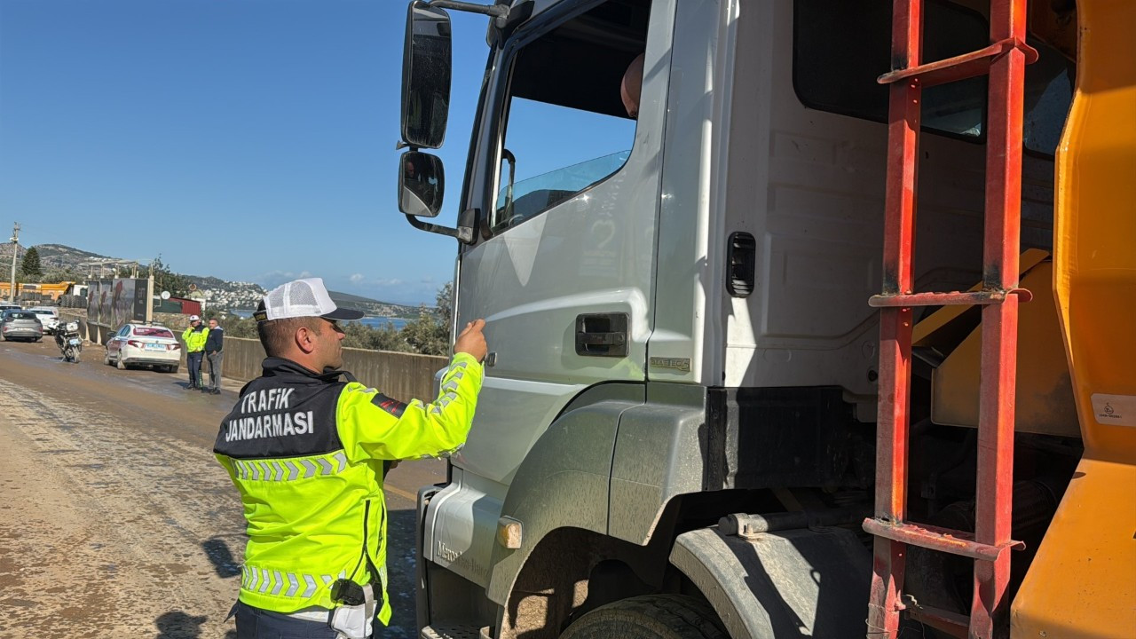 Artan hareketlilik nedeniyle Bodrum İlçe Jandarma Komutanlığı’na bağlı trafik timleri, hafriyat kamyonlarına yönelik sıkı denetimler gerçekleştirdi.