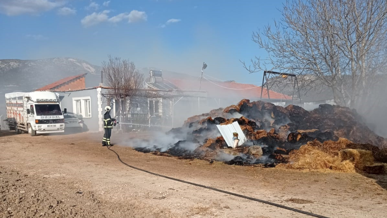 Burdur’un Bucak ilçesinde bir çiftlikte çıkan yangında bin adet saman balyası alevlere teslim oldu. İtfaiye ekiplerinin müdahalesiyle yangın kontrol altına alınırken, yangının çıkış sebebi araştırılıyor.