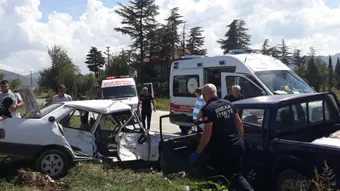 Burdur'da kamyonet ile çarpışan Fiat Tofaş hurdaya döndü: 1'i ağır 3 yaralı
