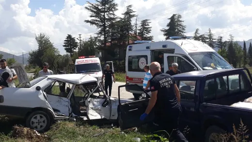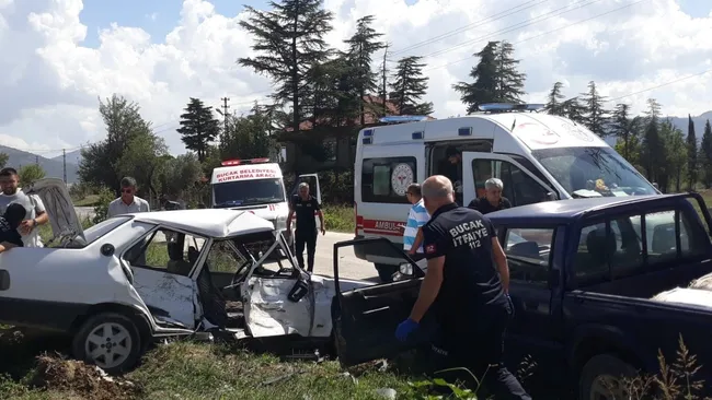 Kaza, saat 11.54 sıralarında Burdur'un Bucak ilçesi Barbaros Mahallesi Adnan Menderes Bulvarı Çevre Yolu Caddesi üzerinde meydana geldi. Edinilen bilgilere göre Ali Y. (71) idaresindeki 07 SV *** plakalı Mazda marka kamyonet ile Kamil Ç. (75) idaresindeki 15 PS *** plakalı Fiat Tofaş marka otomobil kavşakta çarpıştı. Kazada otomobil sürücüsü Kamil Ç. ve kamyonet sürücüsü Ali Y. hafif şekilde yaralanırken otomobilde yolcu olarak bulunan Mehmet A. (62) ağır şekilde yaralandı. Çevredekilerin 112 Acil Çağrı Merkezine ihbarı üzerine olay yerine itfaiye, sağlık ve polis ekipleri sevk edildi. Olay yerine gelen itfaiye ekiplerinin çalışmalarıyla araçtan çıkarılan yaralılar ambulans ile Bucak Devlet Hastanesi'ne kaldırıldı. Kaza ile ilgili inceleme başlatıldı.