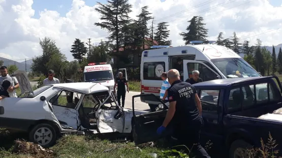 Burdur'un Bucak ilçesinde kamyonet ile otomobilin çarpışması sonucu meydana gelen kazada 1'i ağır 3 kişi yaralandı.