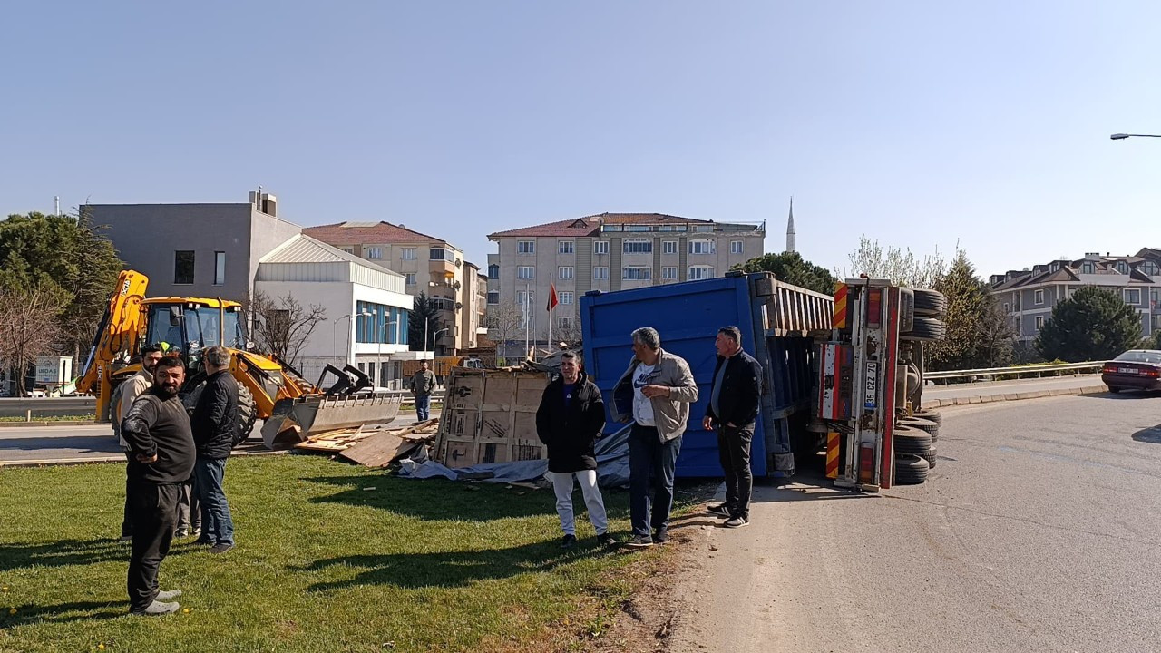 Bursa'nın İnegöl ilçesinde meydana gelen trafik kazasında ahşap yüklü kamyon devrildi. Kaza, saat 15.30 sıralarında Bursa-Ankara kara yolu İnegöl girişindeki köprülü kavşakta yaşandı.