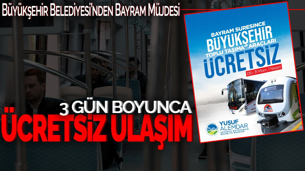 Vatandaş odaklı belediyecilik anlayışı ile en kaliteli hizmetleri Sakaryalılar ile buluşturan Büyükşehir Belediyesi, her bayram olduğu gibi bu yılda 3 günlük Ramazan Bayramı süresince toplu taşımayı ücretsiz olarak vatandaşların hizmetine sunacak.