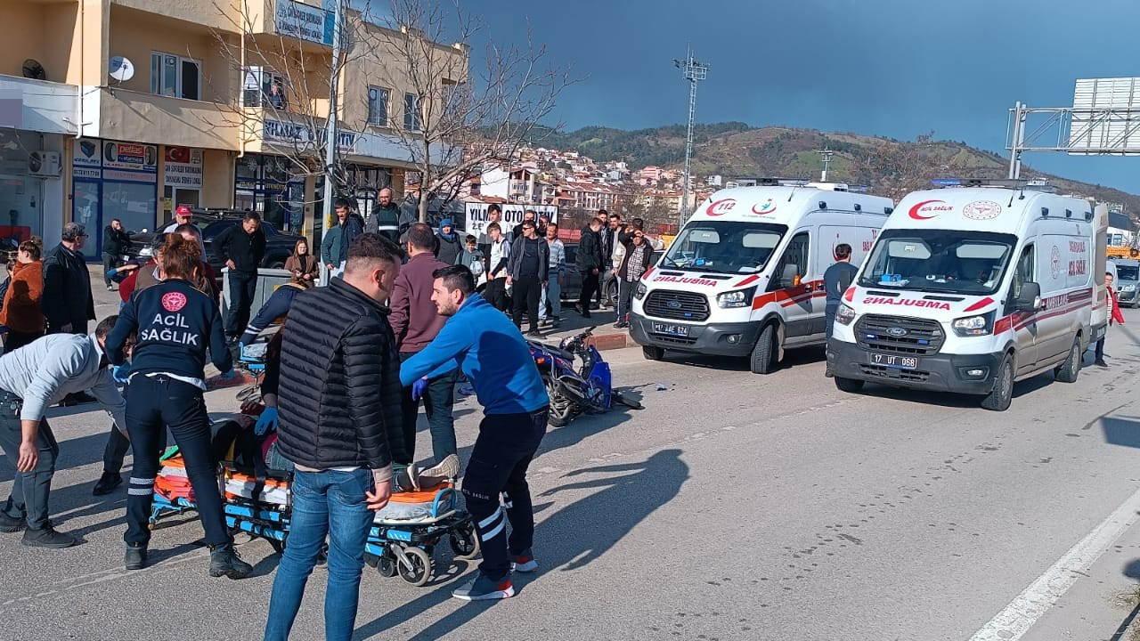Çanakkale'nin Çan ilçesinde seyir halindeki bir motosiklet, aynı yönde ilerleyen otomobile çarptı.