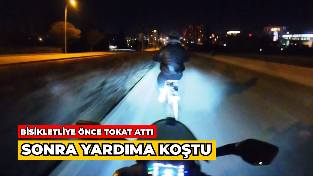Eskişehir’de yokuş aşağı inerken caddenin ortasında ilerleyen bisikletliye çarpmaktan son anda kurtulan motosiklet sürücüsü Can Türk, yaşadığı panik nedeniyle bisikletliye tokat attı. O anlar kask kamerasına yansırken, sürücü daha sonra motosikletini park ederek yere düşen bisikletliye yardım etti. Türk, olay sonrası özür dilediğini belirterek, “Talihsiz bir şekilde tepki gösterdim” dedi.