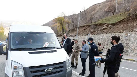 Çatak Kaymakamı Mehmet Erdem Akbulut, Çatak Belediye Başkan Yardımcısı Cihan Yalçın, İlçe Jandarma Komutanı Alican Arslan ve İlçe Emniyet Amiri Emre Altuntop’un da katıldığı denetimde sürücüler bilgilendirildi. Çatak-Van yolu uygulama noktasında yapılan denetimde jandarma ve polis ekipleri sürücülere, trafikte yayalara öncelik tanıma, hız sınırı, emniyet kemeri kullanımı, telefon veya benzeri iletişim araçlarının trafikte kullanılmaması ve kurallara uyulması konusunda uyarıda bulundu.