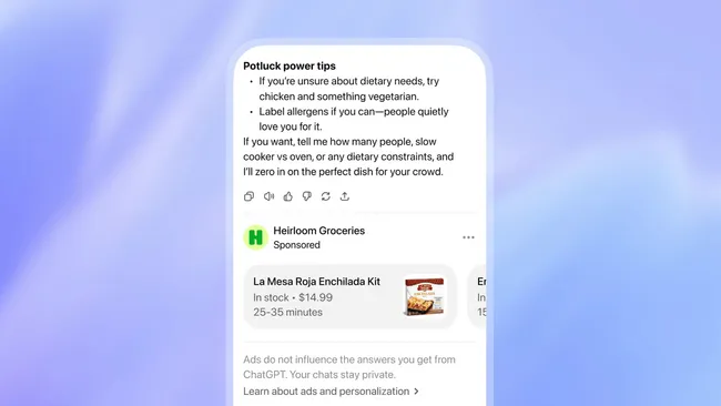 ChatGPT’nin ücretsiz sürümünü kullanan bazı kullanıcılar, sohbet yanıtlarının altında “sponsorlu” ibaresiyle reklam içeriklerinin yer almaya başladığını fark etti. Reklamların, yapay zekânın verdiği yanıtların içeriğini etkilemediği belirtiliyor.