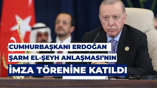 Cumhurbaşkanı Recep Tayyip Erdoğan, Gazze’de kalıcı barışın tesisine yönelik diplomatik adımlar kapsamında Mısır’da düzenlenen “Barış için Şarm el-Şeyh Zirvesi”ne katıldı. Erdoğan, ABD Başkanı Donald Trump, Mısır Cumhurbaşkanı Abdulfettah es-Sisi ve Katar Emiri Şeyh Temim bin Hamed Al Sani ile birlikte “Şarm el-Şeyh Anlaşması” ve “Niyet Beyanı”na imza attı. Zirve, Gazze’deki ateşkesin kalıcı hale gelmesi için önemli bir dönüm noktası olarak değerlendirildi.