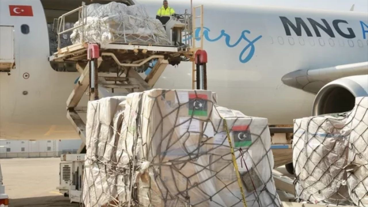Kahramanmaraş merkezli depremler nedeniyle Libya'da toplanan 15 ton yardım, kargo uçakla Türkiye’ye gönderildi.