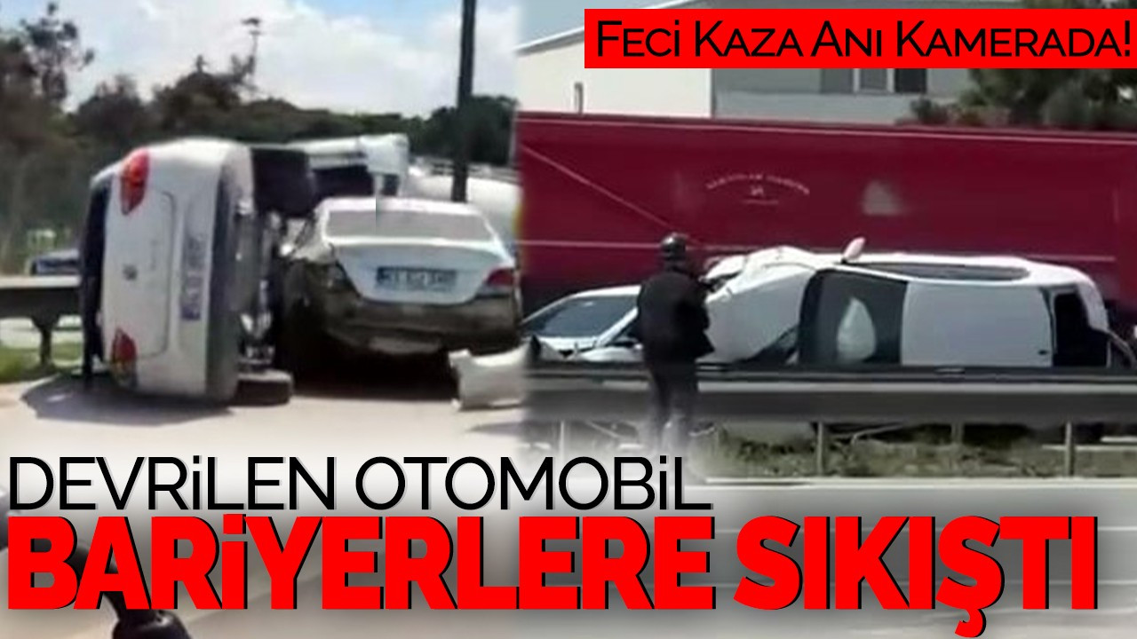 Devrilen Otomobil Bariyere Sıkıştı: Feci Kaza Anı Kamerada!