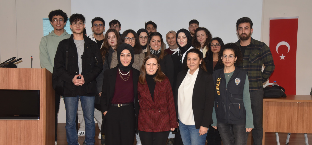 Seminerin ilk konuşmacıları olarak siber suçlarla mücadele ve bu alandaki çalışmalar hakkında detaylı bilgiler sunan Polis Memurları Sami Karakaya ve Sevinç Çoban; kişisel veri nedir, nasıl korunmalıdır sorularını ayrıntılı bir şekilde cevapladı. Bilgi kirliliği, yanlış bilgilerin paylaşılması ile siber zorbalık konuları hakkında da bilgilendirmede bulunan Polis Memurlarımız siber zorbalığa yönelik farkındalık oluşturulmasına ışık tuttu.