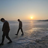 Bitlis'in Adilcevaz ilçesinde kuş cenneti olarak bilinen ve soğuk havadan dolayı donan Arin Gölü’nde yaşanan gün batımı kartpostallık görüntüler oluşturdu.