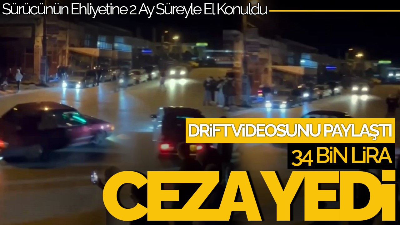 Drift atan sürücüye, "drift atmak" maddesi kapsamında 32 bin 233 TL, "tehlike oluşturacak ve çevredekileri rahatsız edecek derecede gürültü çıkaran araçları kullanmak" maddesi kapsamında 1.506 TL ve "standart dışı süspansiyon sistemi kullanmak" maddesi kapsamında 690 TL olmak üzere toplam 34 bin 429 TL idari para cezası kesildi.