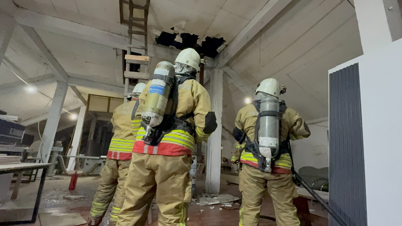 Atölyede bulunan sobadan kaynaklandığı belirlenen yangın, kısa sürede dumanların yükselmesine yol açtı.