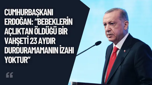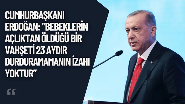 Erdoğan, insani değerlerin ayaklar altına alındığı bir dönemden geçildiğini belirterek, bölgede yaşananlara karşı sessiz kalan aktörleri vicdan ve sorumluluk bilinciyle hareket etmeye çağırdı.