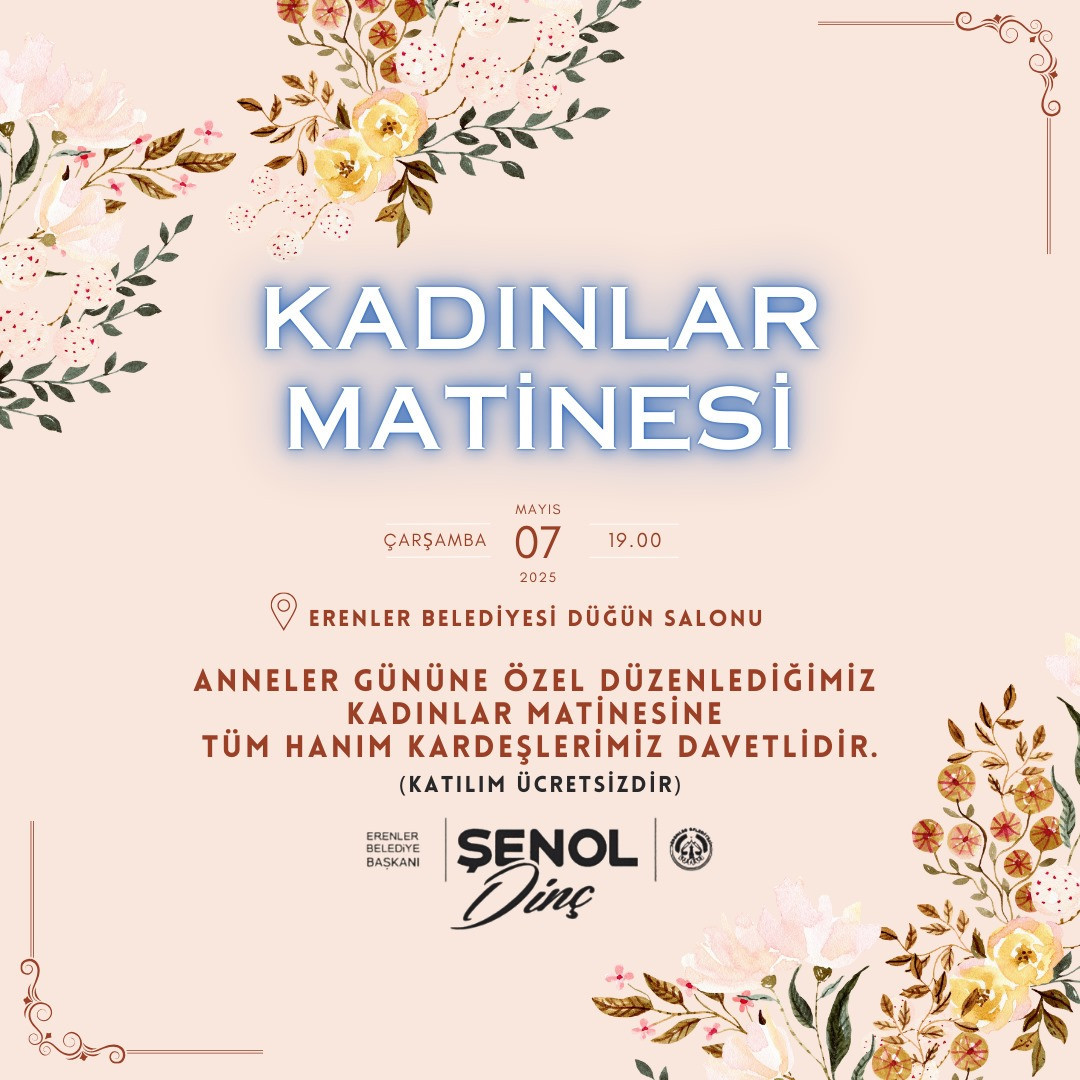 Erenler Belediyesi, Anneler Günü’nü ‘Kadınlar Matinesi’ programı ile kutlayacak.