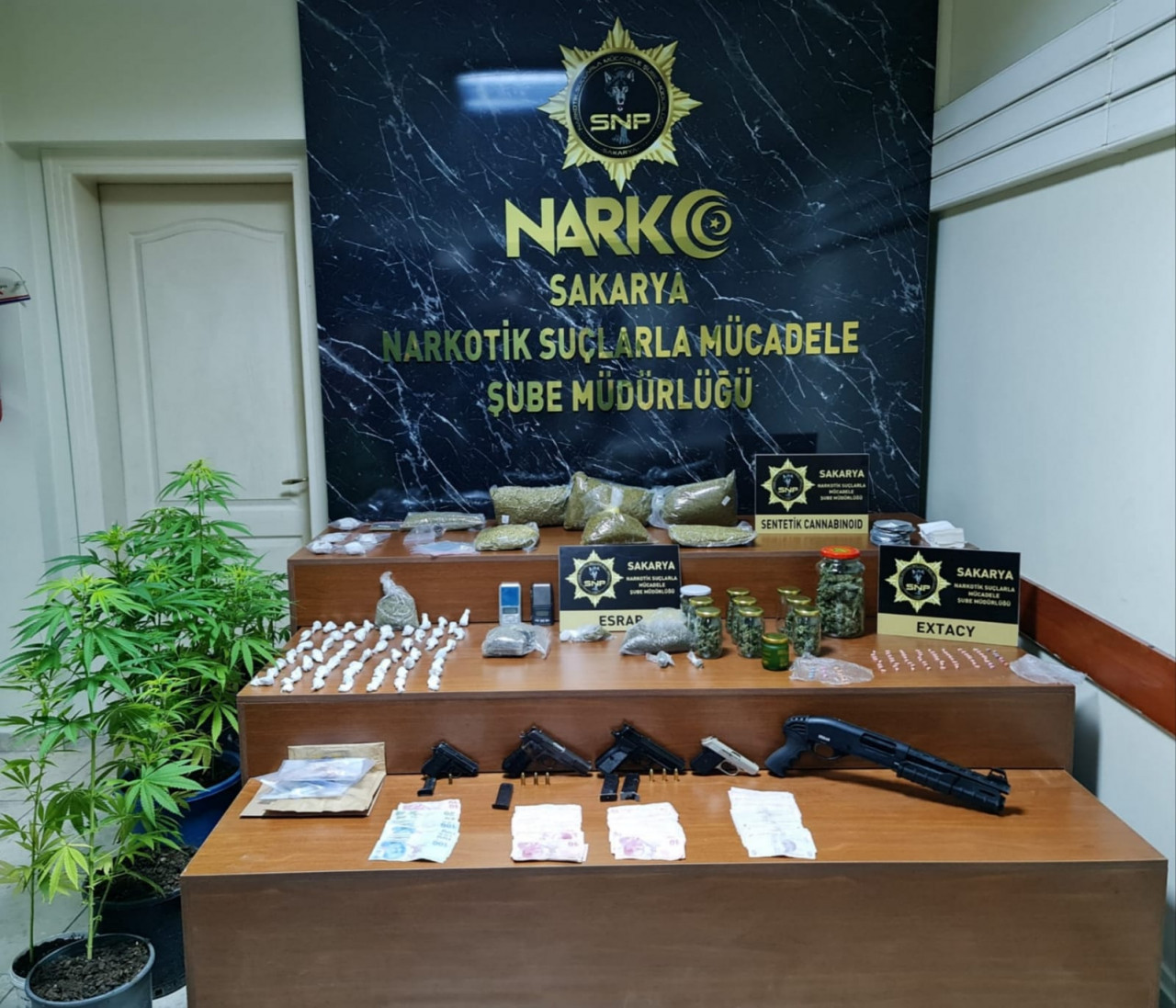 Sakarya'da alınan istihbarat üzerine iki farklı mahallede 20 ayrı adrese yapılan uyuşturucu baskınında 4 kilo 800 gram bonzai ile birlikte extacy, kenevir bitkisi ve ruhsatsız silahlar ele geçirilirken 23 kişi gözaltına alındı.