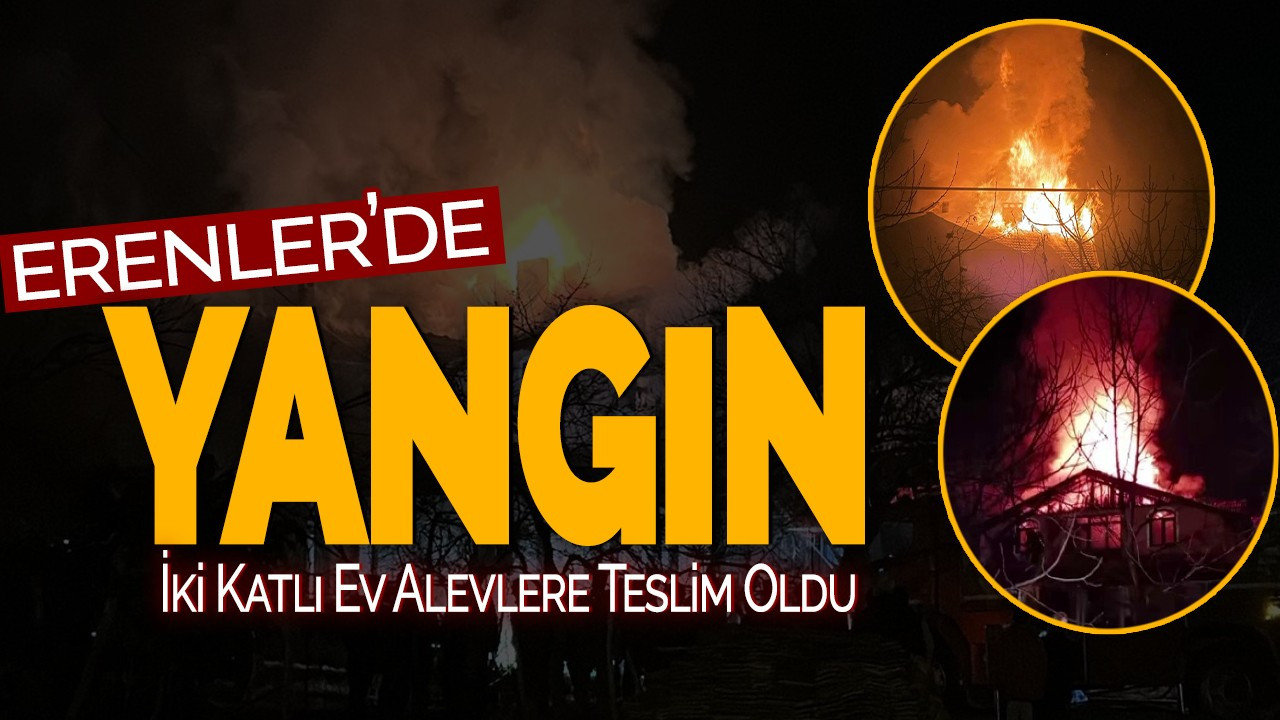 Sakarya’nın Erenler ilçesinde dün gece saatlerinde iki katlı evde çıkan yangın itfaiye ekiplerince söndürüldü. Evin alev topuna döndüğü anlar cep telefonu kamerası ile saniye saniye kaydedildi.