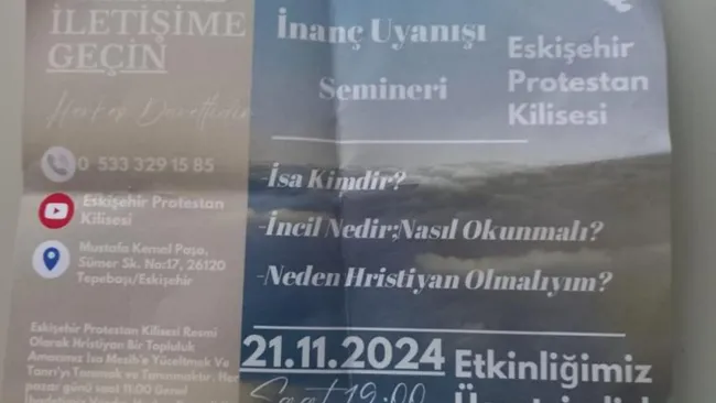 Diyanet-Sen Eskişehir Şube Başkanı İlhan Köroğlu, son günlerde Eskişehir ve bazı illerde yoğunlaşan misyonerlik faaliyetleri hakkında açıklamalarda bulundu. Köroğlu, evlere ve kapılara bırakılan İncil, mektup ve davetiyelerle gerçekleştirilen bu tür faaliyetlerin özellikle gençleri hedef aldığını ifade etti.
