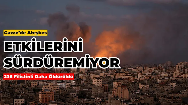 Gazze Şeridi’nde 10 Ekim 2025’te ilan edilen ateşkesin ardından İsrail ordusunun saldırıları sonucu 236 Filistinli yaşamını yitirdi. Bölgedeki insani durum ağırlaşmaya devam ediyor.