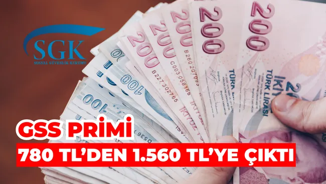 Genel Sağlık Sigortası (GSS) primi 2025 itibarıyla 780 TL’den 1.560 TL’ye çıkarıldı.