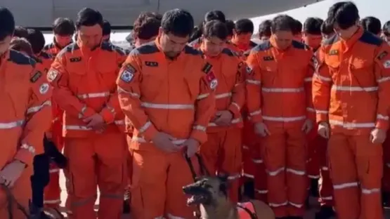 Depremin ardından bölgeye gelen Güney Kore ekibi, ülkelerine dönmeden önce hayatını kaybedenler için saygı duruşunda bulundu.