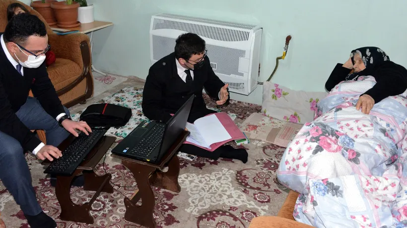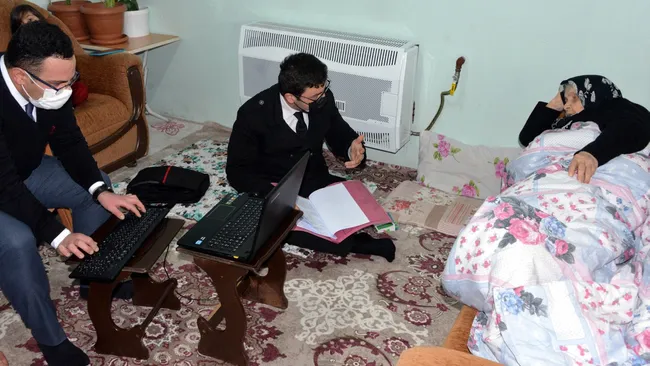 Kahramanmaraş'ta Şaziye Değer (85) hastalığı nedeniyle tanık olduğu dava için adliyeye gidemeyince hakim, katip ve mübaşirden oluşan mahkeme heyeti, evine geldi.
