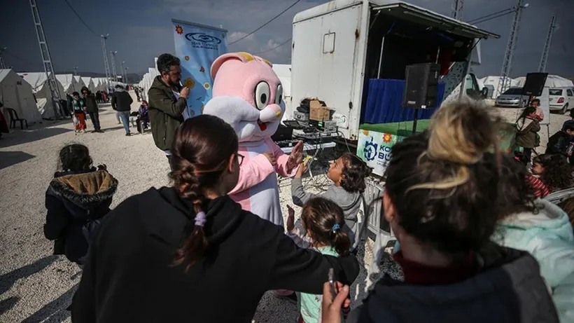 Hatay'ın Defne ilçesindeki AFAD ve Kocaeli Büyükşehir Belediyesi iş birliğiyle kurulan yaklaşık 500 çadırda depremzedeler her türlü imkan sunularak barındırılıyor.