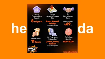 Efsane Kasım döneminde, platformda iş ortakları tarafından toplamda 650 bin kampanya gerçekleştirildi. Platform üzerinden yapılan satışların yüzde 69'u iş ortakları tarafından sağlanırken, üç büyük il dışında en çok satış yapan şehirler arasında Çorum, Bursa ve Kayseri öne çıktı.