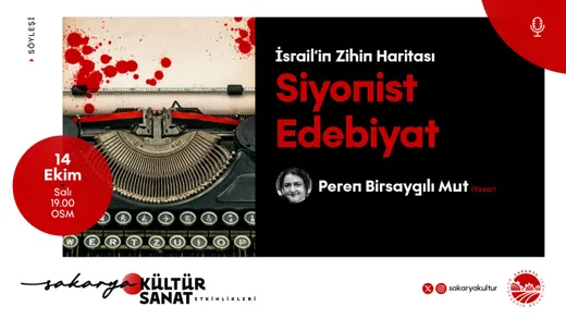 Sakarya Büyükşehir Belediyesi Kültür ve Sosyal İşler Dairesi Başkanlığı tarafından gerçekleştirilen kültür sanat etkinliklerinde Ekim takvimi “İsrail’in Zihin Haritası: Siyonist Edebiyat” söyleşisiyle devam edecek.